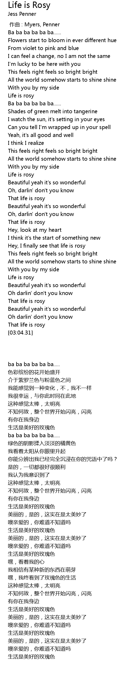 | [03:01.02] | That life is rosy |