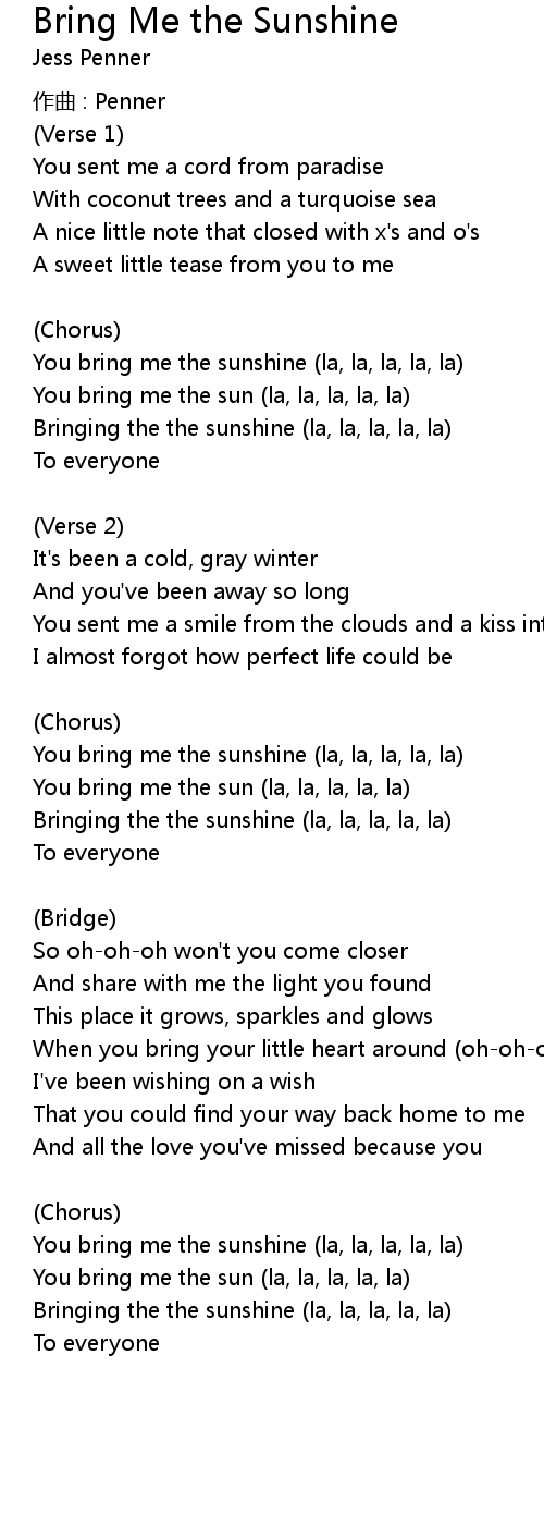 | Bringing the the sunshine (la, la, la, la, la) | |