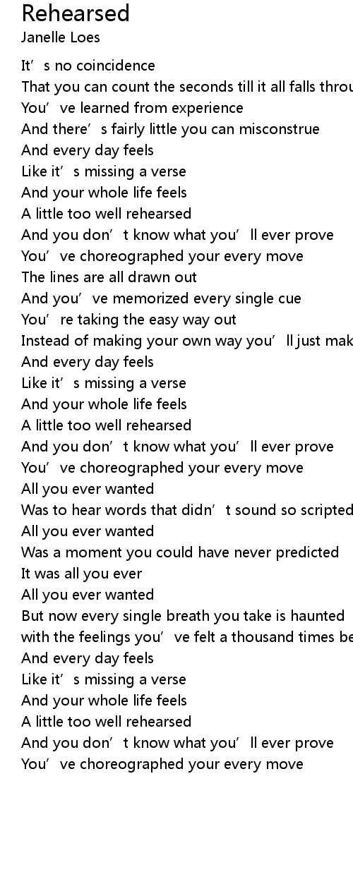| Song | Rehearsed |