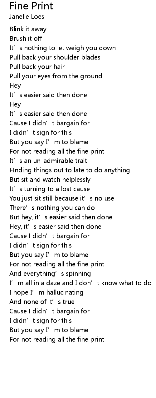 | Song | Fine Print |