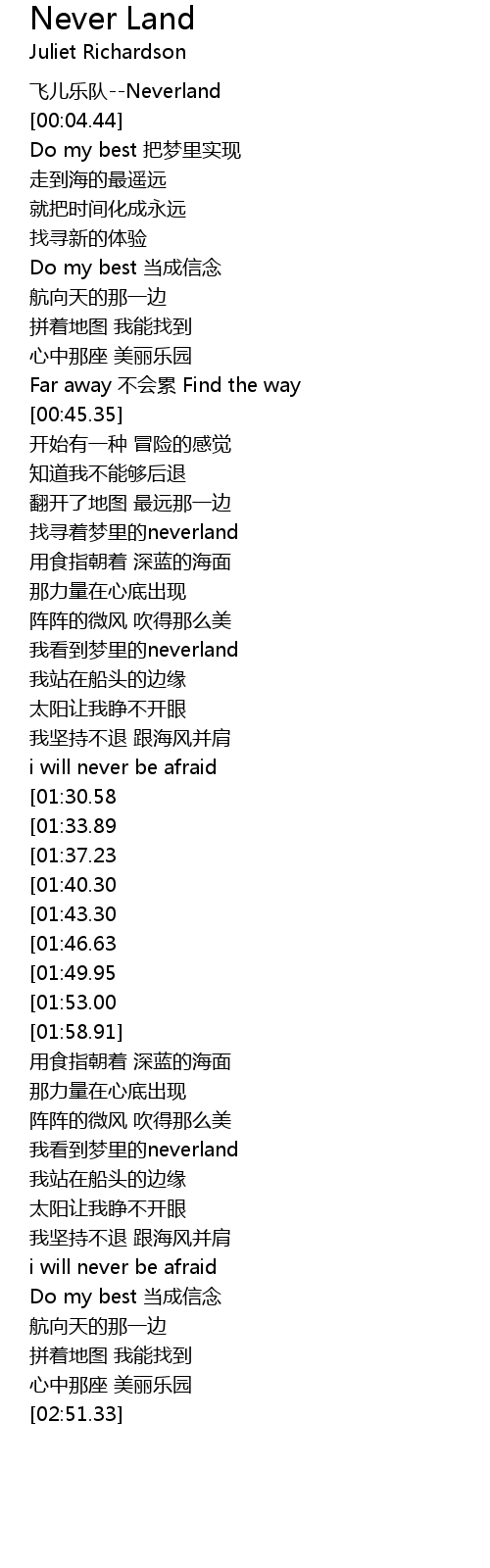 | [02:18.16] | 我看到梦里的neverland |