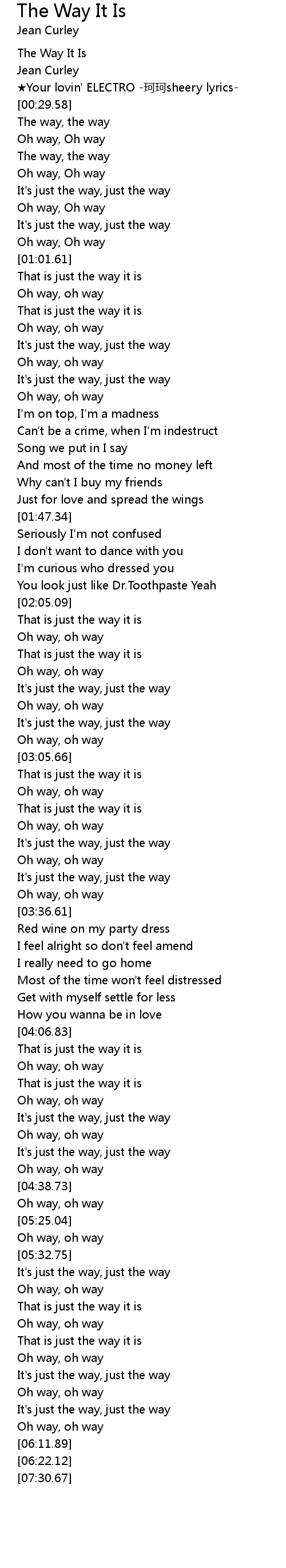 | [00:00.45] | The Way It Is |