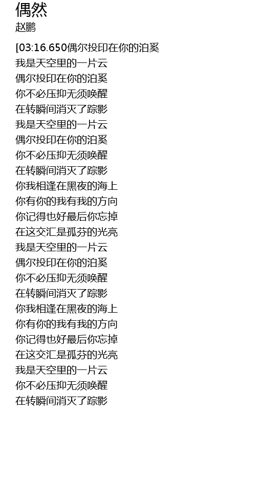 | [00:57.910] | 偶尔投印在你的泊奚 |