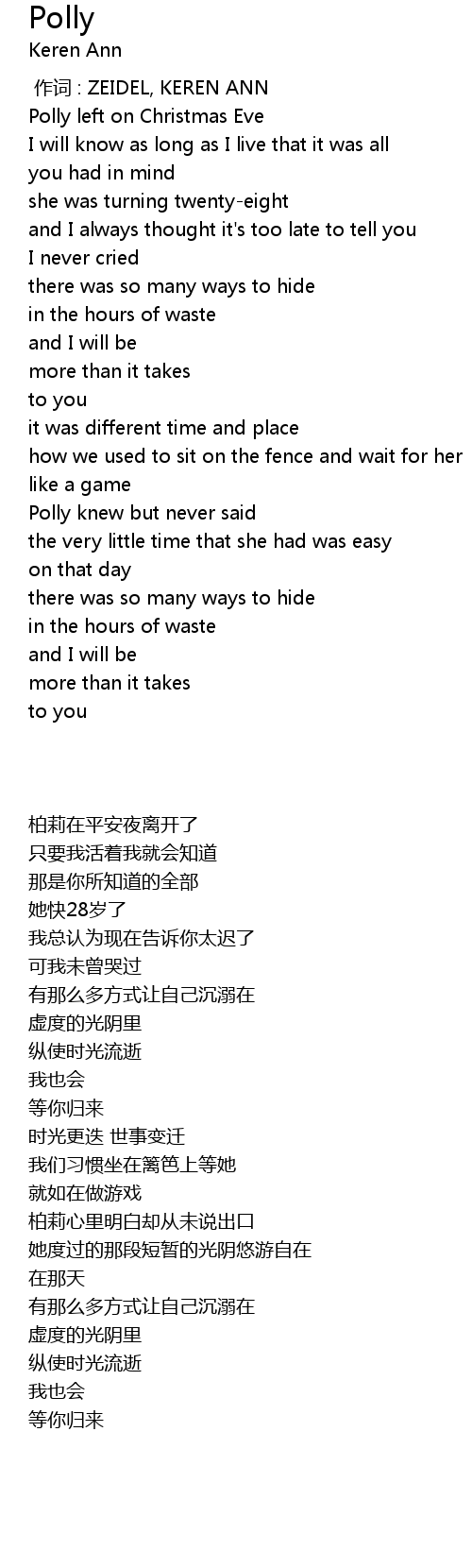 | [00:00.00] | 作词 : ZEIDEL, KEREN ANN |