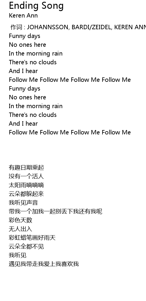 | [00:00.00] | zuò cí : JOHANNSSON, BARDI ZEIDEL, KEREN ANN |