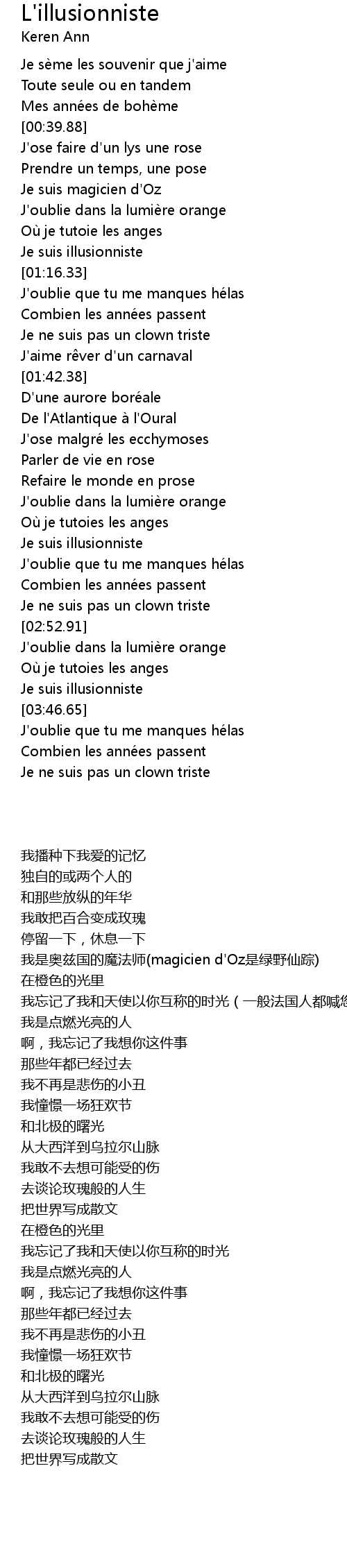 | [00:22.93] | Je se me les souvenir que j' aime |