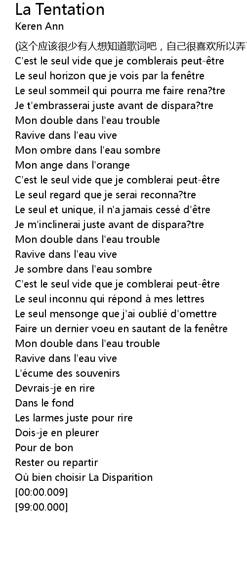 | [00:19.52] | Je t'embrasserai juste avant de dispara?tre |