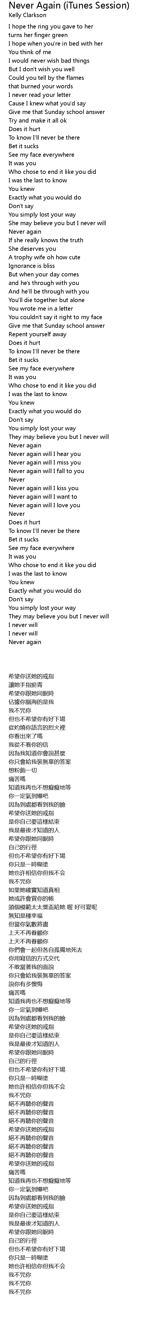 Never again will I kiss you |