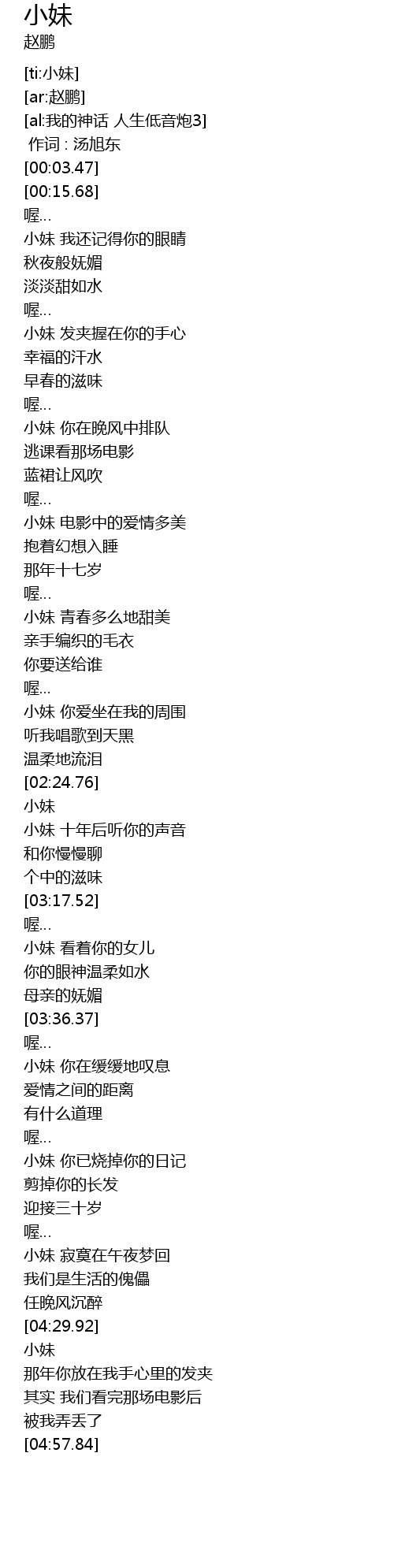 | [03:03.43] | 小妹 十年后听你的声音 |