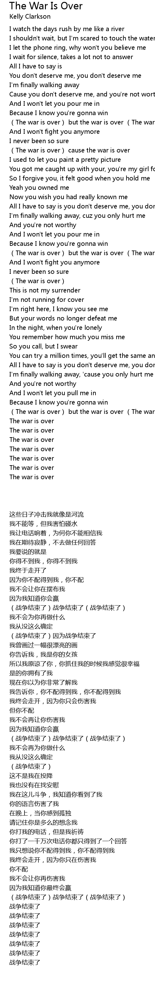 | [01:09.110] | (The war is over) cause the war is over |