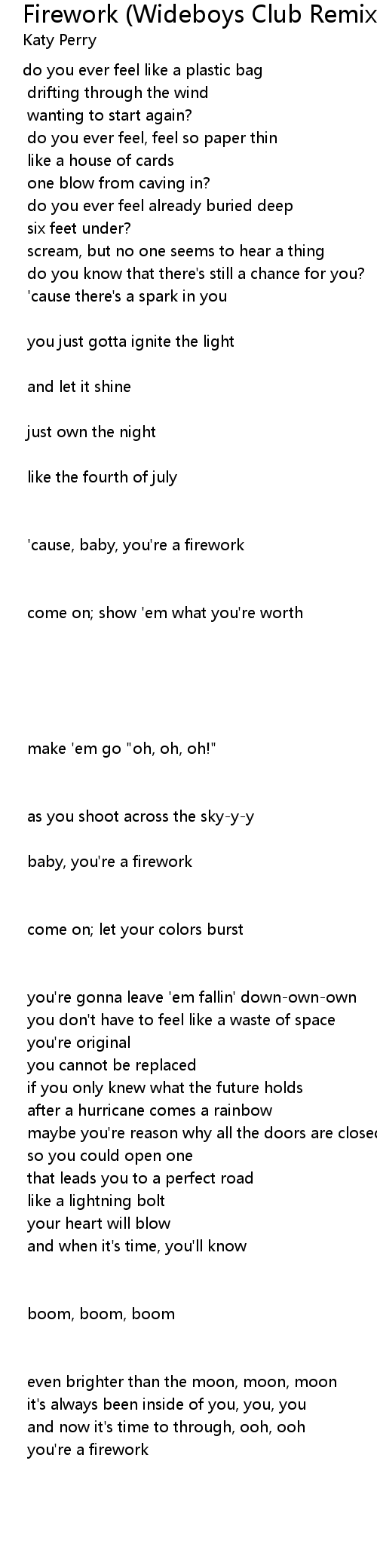 baby, you're a firework |