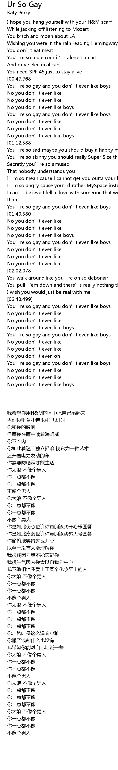 | [02:43.990] | You' re so gay and you don' t even like boys |