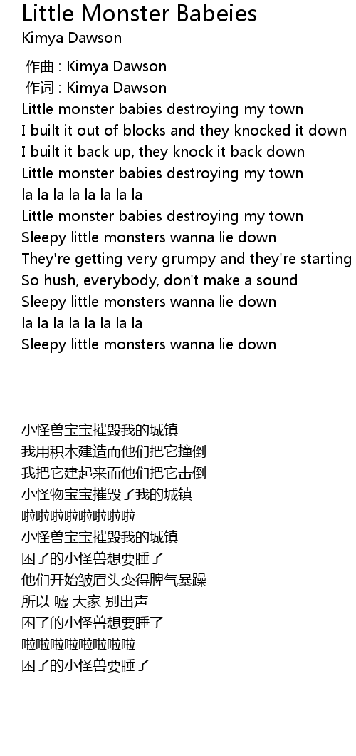 | [00:51.80] | Sleepy little monsters wanna lie down |