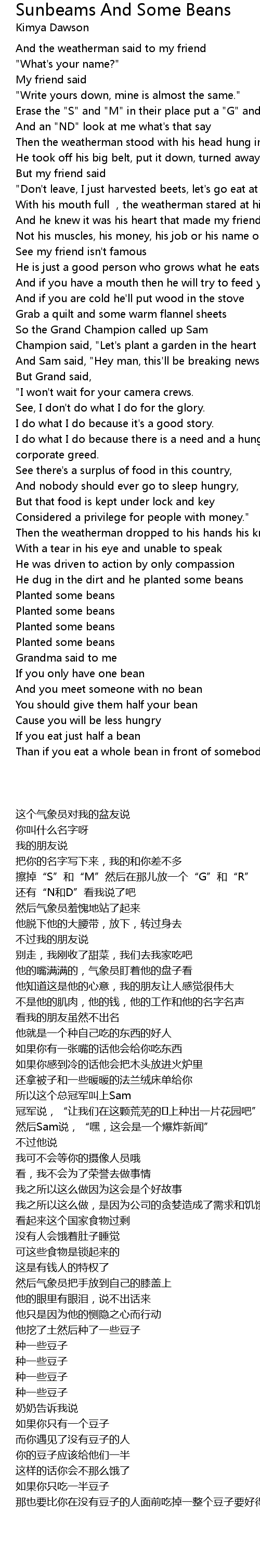 | [03:04.640] | He dug in the dirt and he planted some beans |