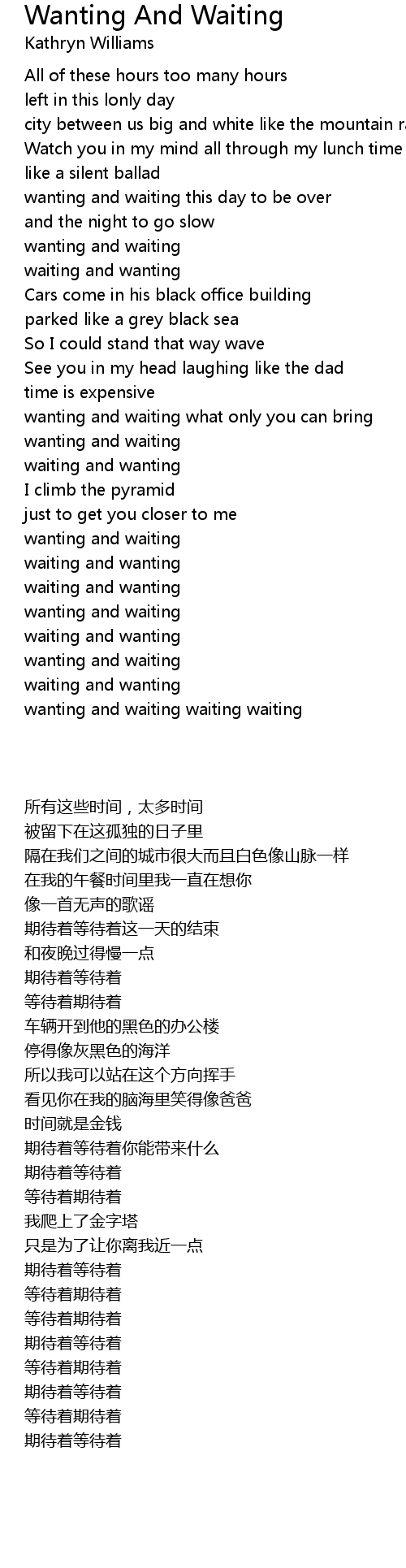 wanting and waiting waiting waiting |