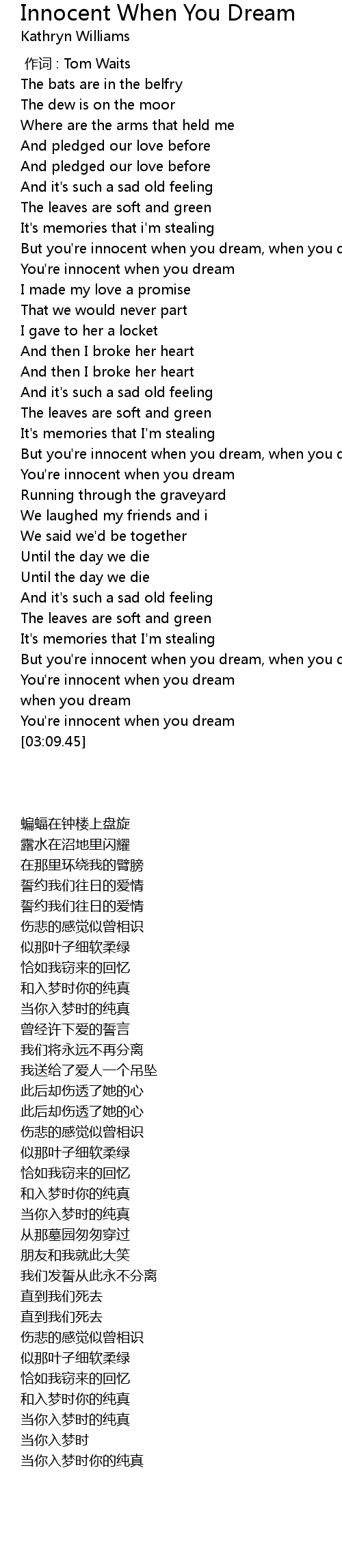 | [01:33.16] | But you're innocent when you dream, when you dream |