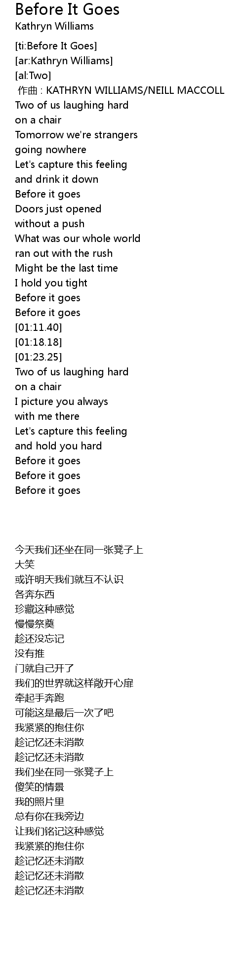 | [00:00.00] | zuo qu : KATHRYN WILLIAMS NEILL MACCOLL |