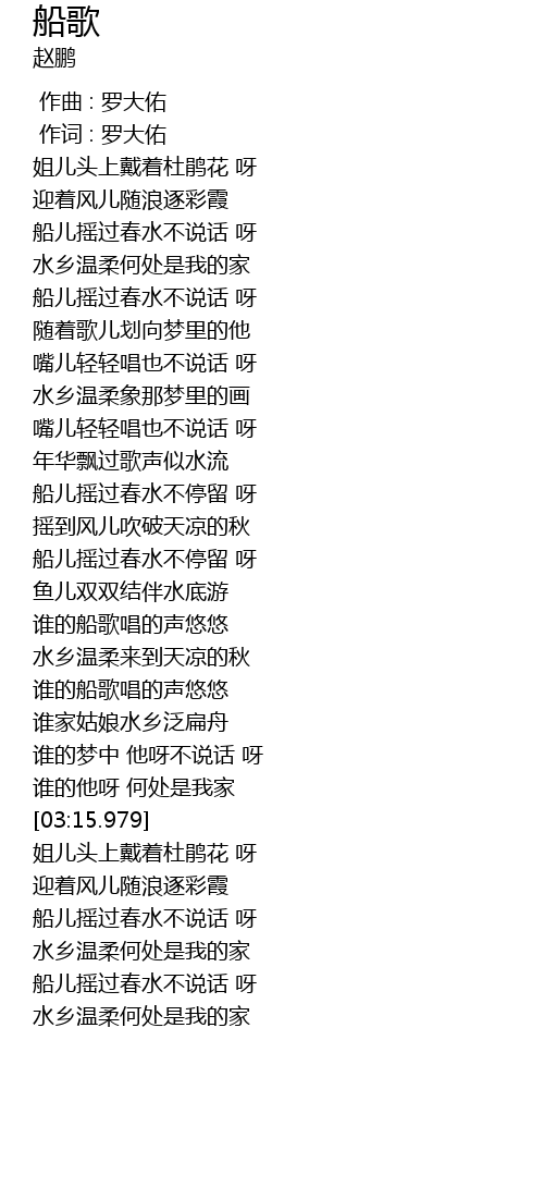 | [02:52.737] | 谁的船歌唱的声悠悠 |