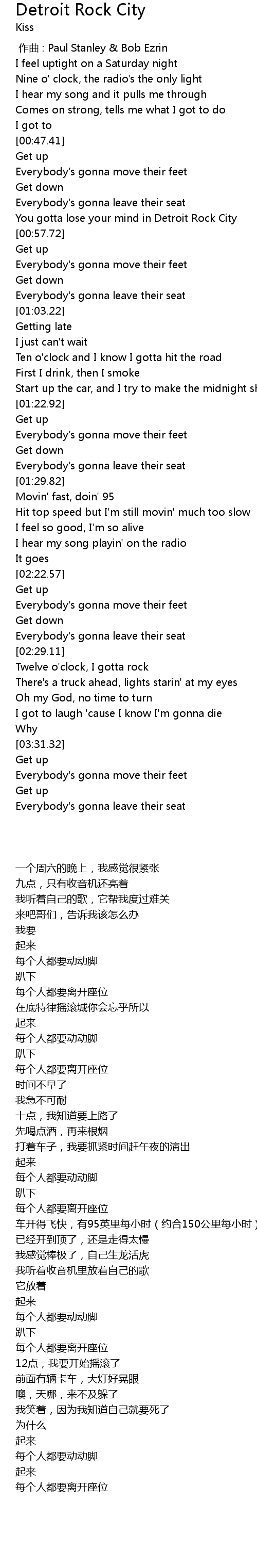 [00:00.00] 作曲 : Paul Stanley & Bob Ezrin