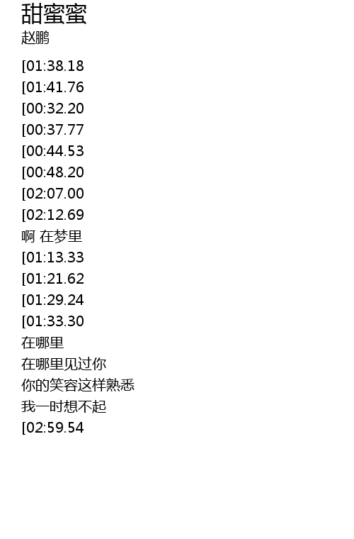 | [03:32.92][01:38.18][00:23.88] | 甜蜜蜜 |