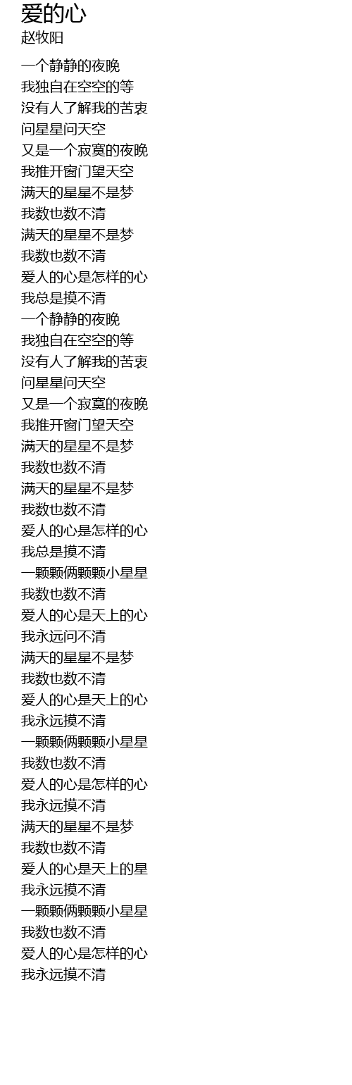 | [02:22.56] | 爱人的心是天上的心 |