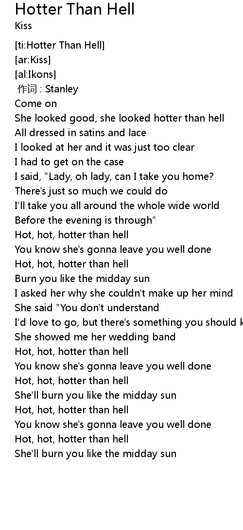 | [00:18.97] | She looked good, she looked hotter than hell |