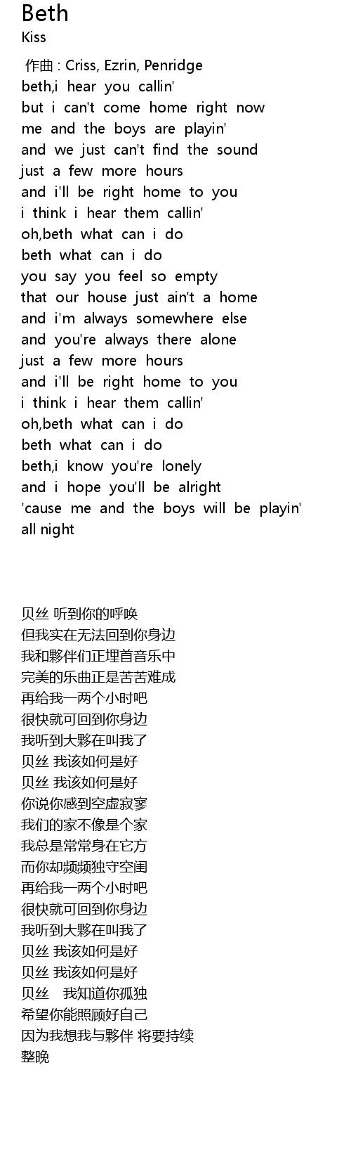 | [00:17.01] | beth,i hear you callin' |