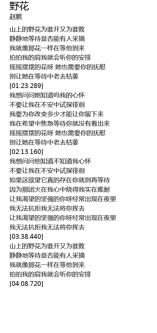 | [03:56.200] | 我就像那花一样在等他到来 |