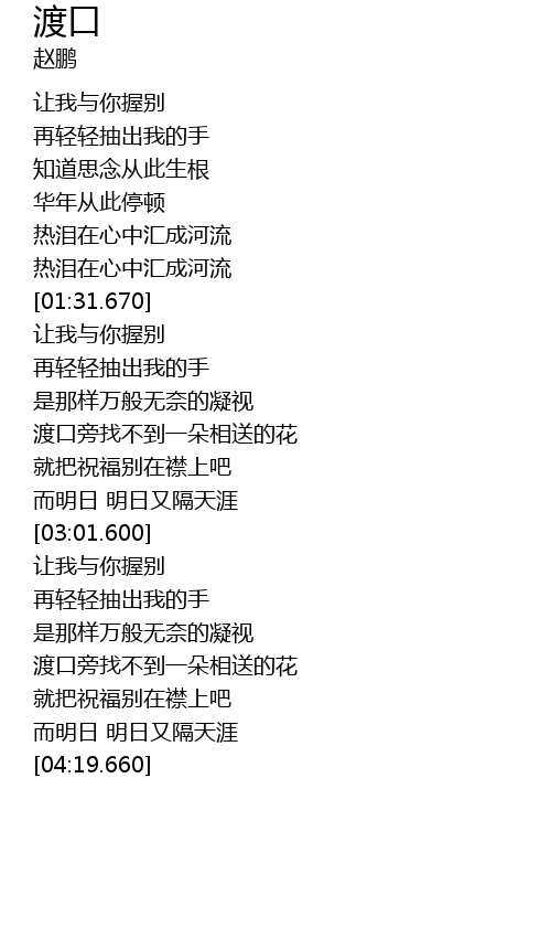 | [03:50.960] | 渡口旁找不到一朵相送的花 |