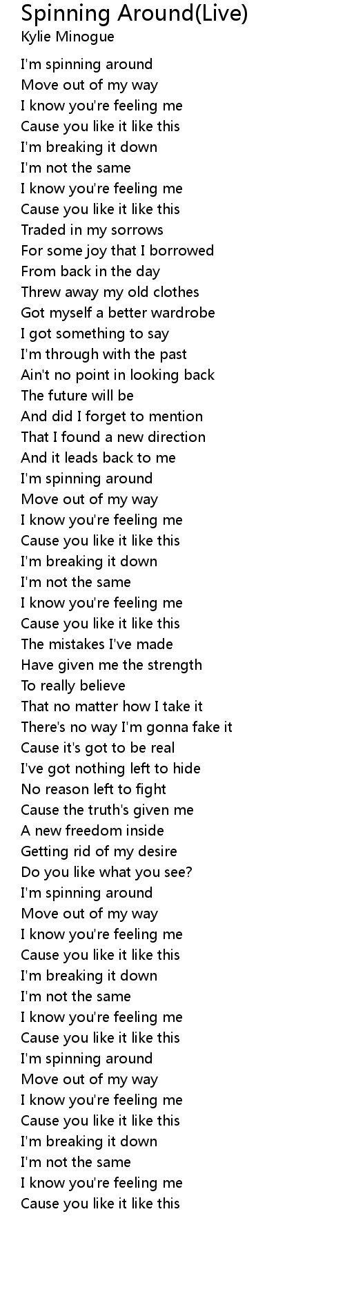 | [00:24.370] | I'm spinning around |