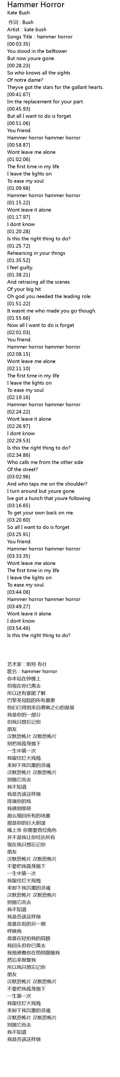 | [00:00.91] | Artist:kate bush |