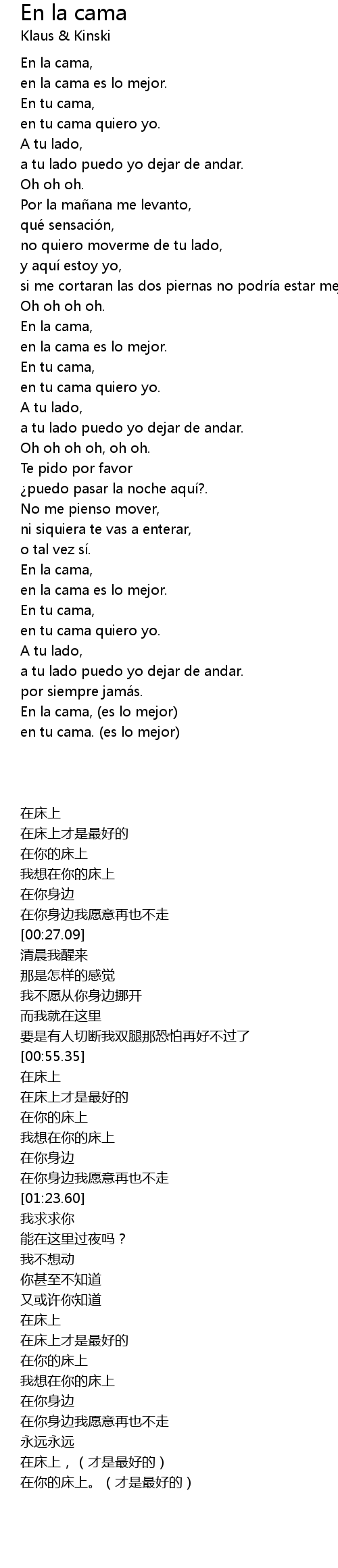 | [00:57.97] | En la cama, |
