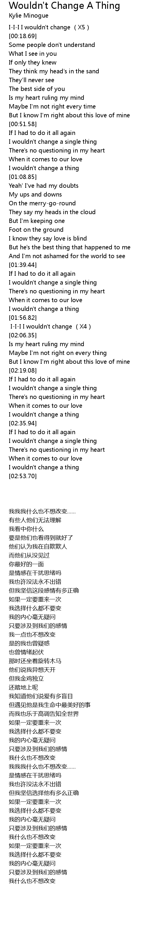 | [01:53.22] | I wouldn' t change a thing |
