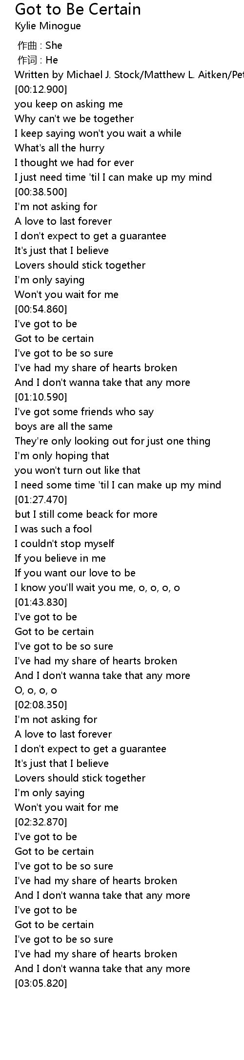 | [02:51.320] | Got to be certain |