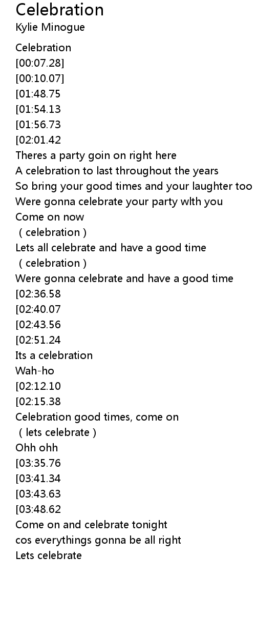 | [00:33.65][01:48.75] | Celebration good times, come on |