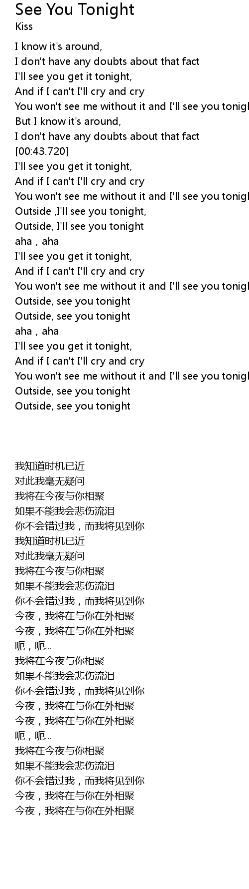 | [00:53.050] | You won' t see me without it and I' ll see you tonight, |