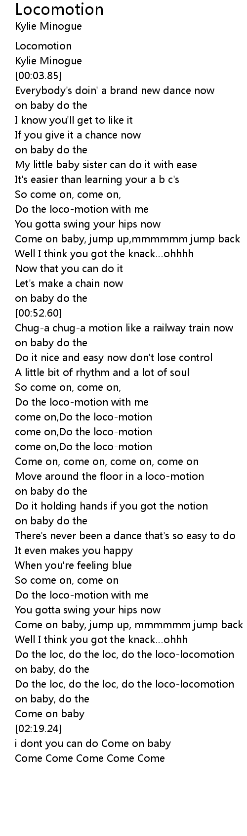 | [01:09.57] | Do the loco-motion with me |