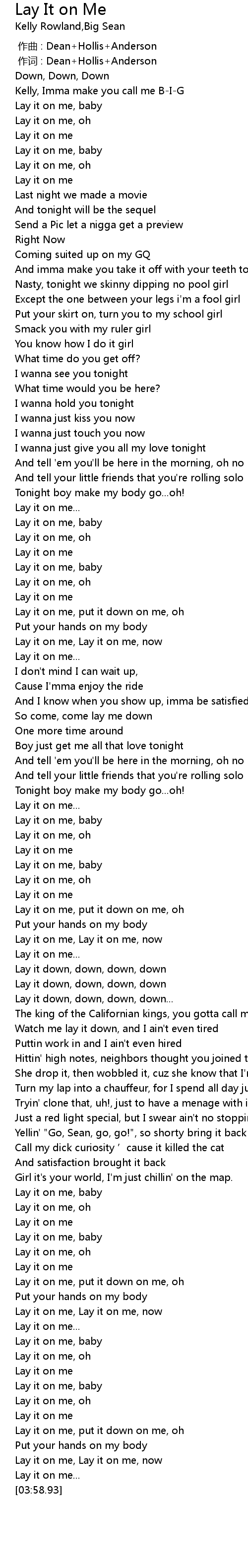 | [03:52.43] | Lay it on me, Lay it on me, now |