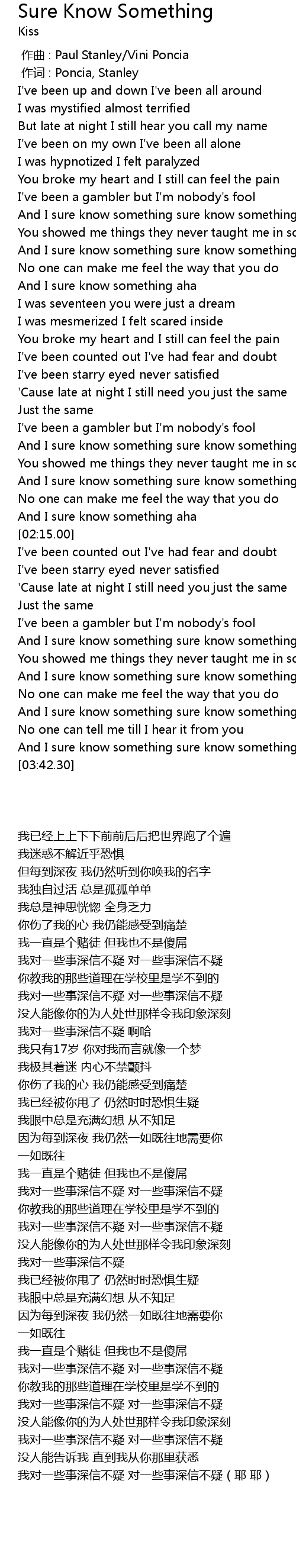 | [00:00.00] | 作曲 : Paul Stanley/Vini Poncia |