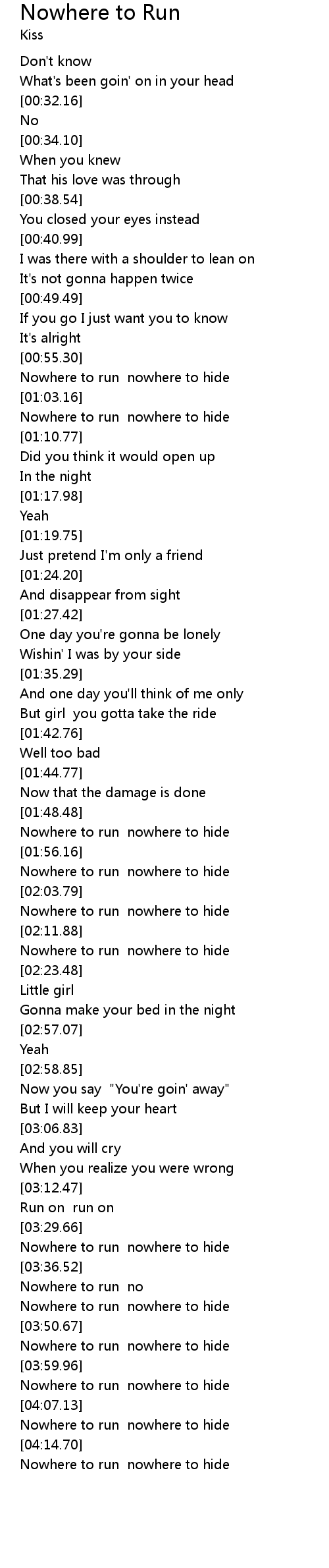 | [04:15.88] | Nowhere to run nowhere to hide |