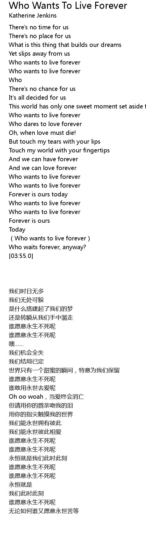 | [03:03.510] | Who wants to live forever |