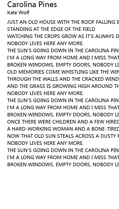 THE SUN'S GOING DOWN IN THE CAROLINA PINES |