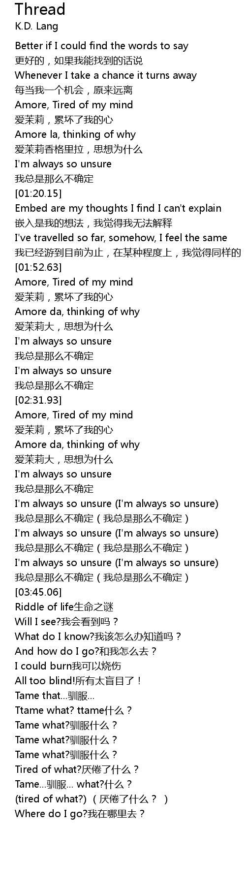| [01:32.27] | Embed are my thoughts I find I can't explain |