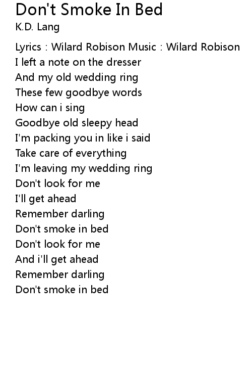 | Song | Don't Smoke In Bed |
