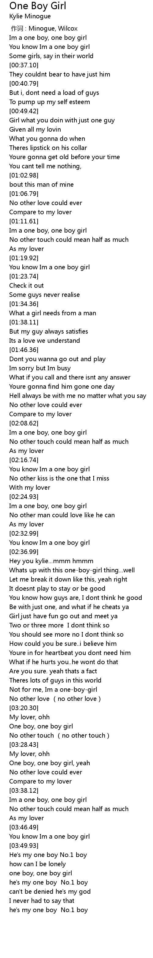 | [03:15.06] | Not for me, Im a oneboygirl |