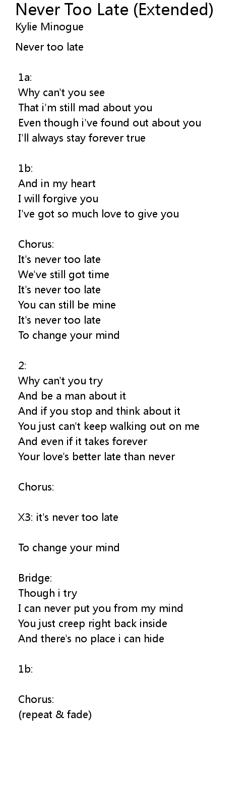Your love's better late than never |