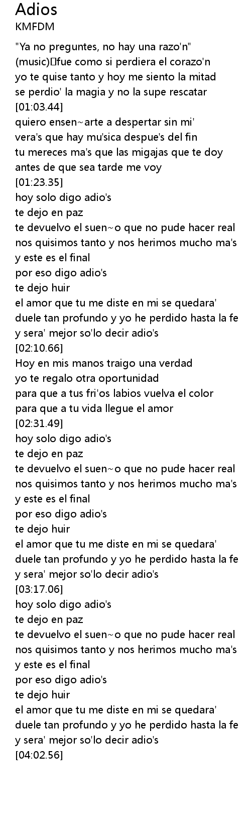 | [03:59.36] | y sera' mejor so'lo decir adio's |