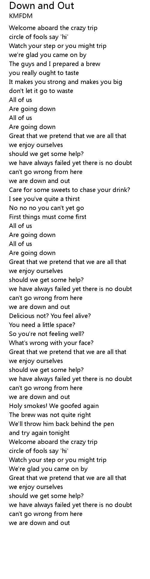 | we are down and out |