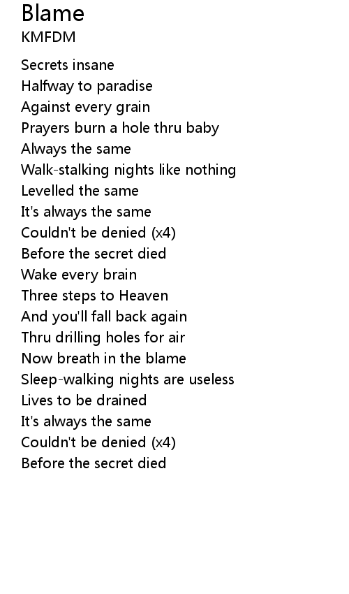 | Now breath in the blame | |