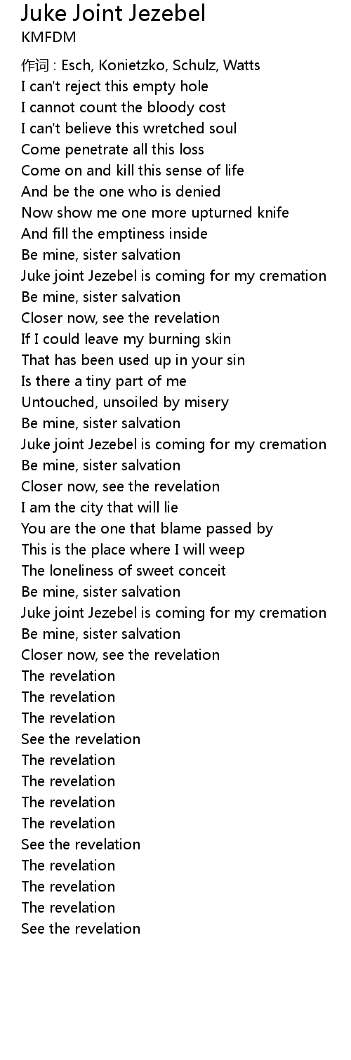 | Juke joint Jezebel is coming for my cremation | |